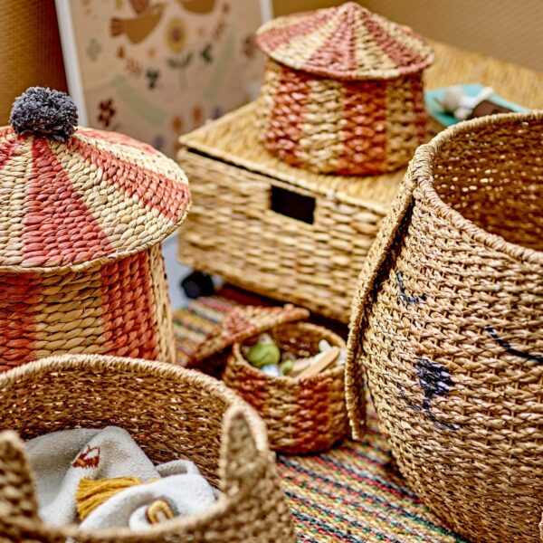 Armas triibuline hoiukorv, mis julgustab lapsi oma tuba korras hoidma! See lõbus ja silmapaistev korv muudab koristamise mänguliseks – viska mänguasjad, klotsid või muud pisiesemed korvi ja sulge kaas. Nii näeb tuba hetkega kenam välja ning kõigil asjadel on oma koht.