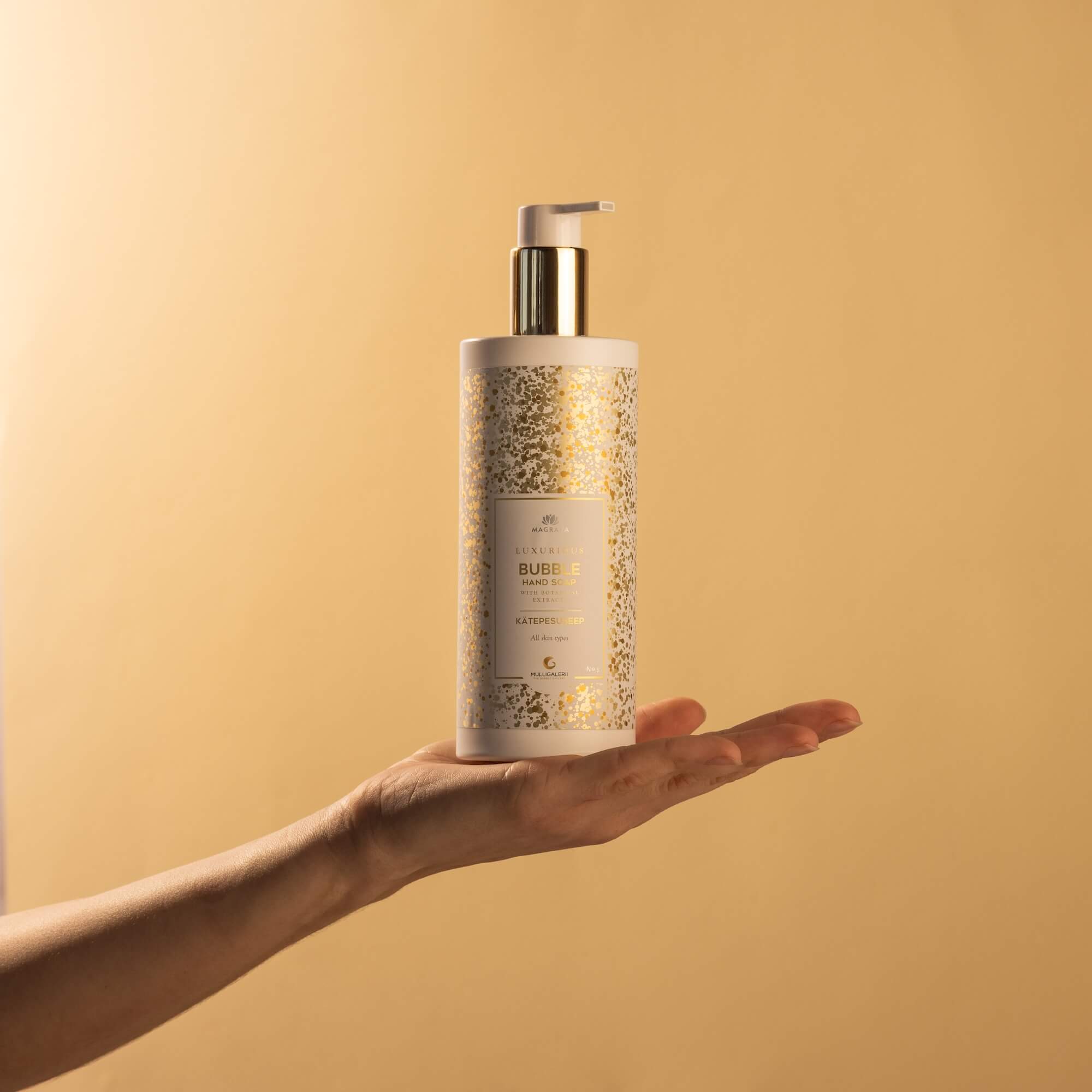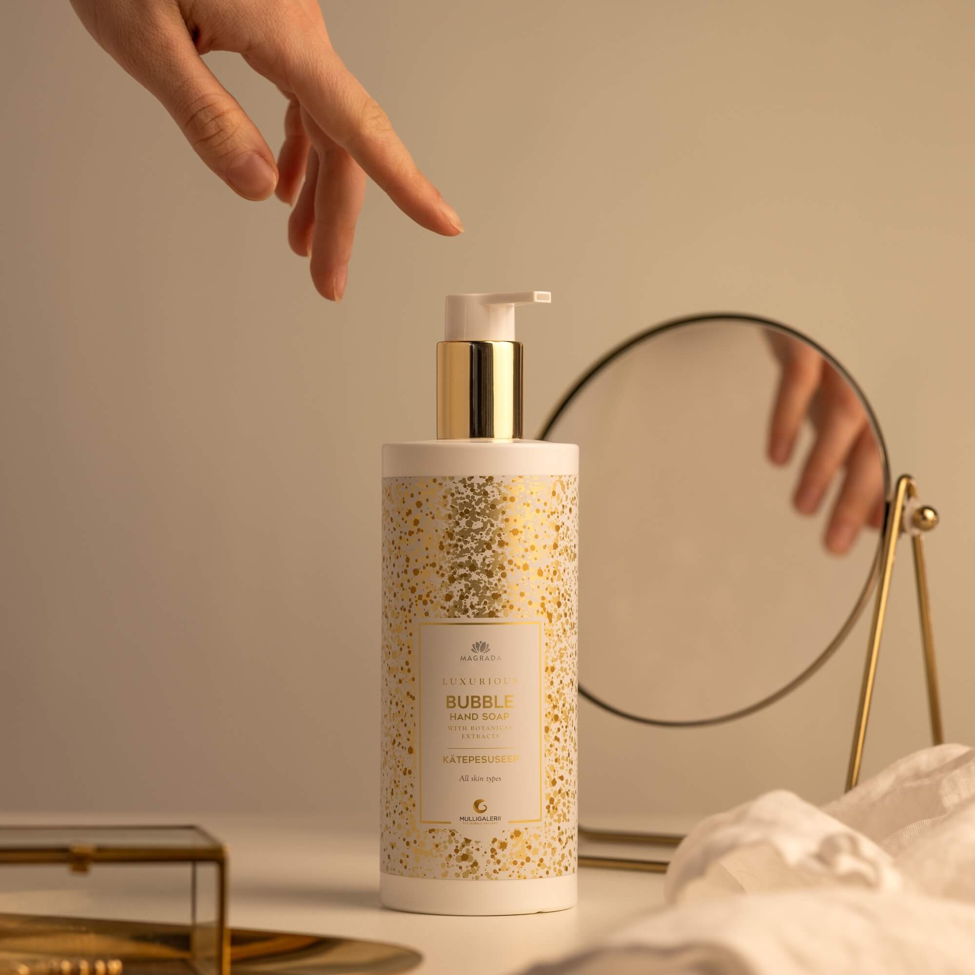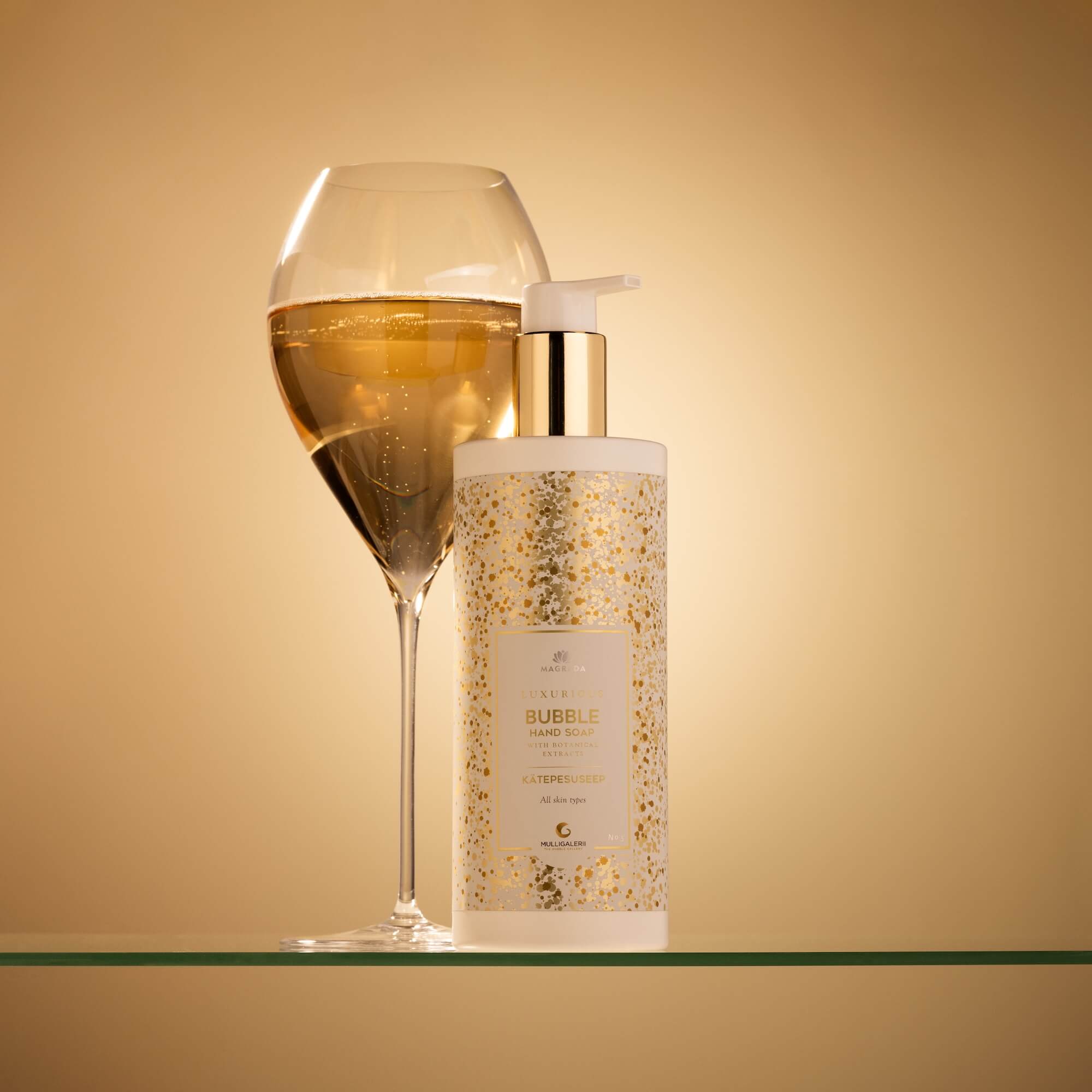Koostöös Mulligaleriiga on Magrada loonud tõeliselt luksusliku ja lummava tootesarja, mis ühendab endas parima kvaliteetvahuveini külluslikud aroomid ja õrnad botaanilised ekstraktid, et kinkida sulle nauditav elamus. Kipslill, aaloe, pesuakaatsia ja balaniit moodustavad nahka hellitava neliku, mis pakub rikkalikku hoolitsust. Eksklusiivne kätepesuseep paitab sinu meeli ning siidine seebivaht puhastab ja niisutab su nahka, jättes selle pehmeks ja säravaks.